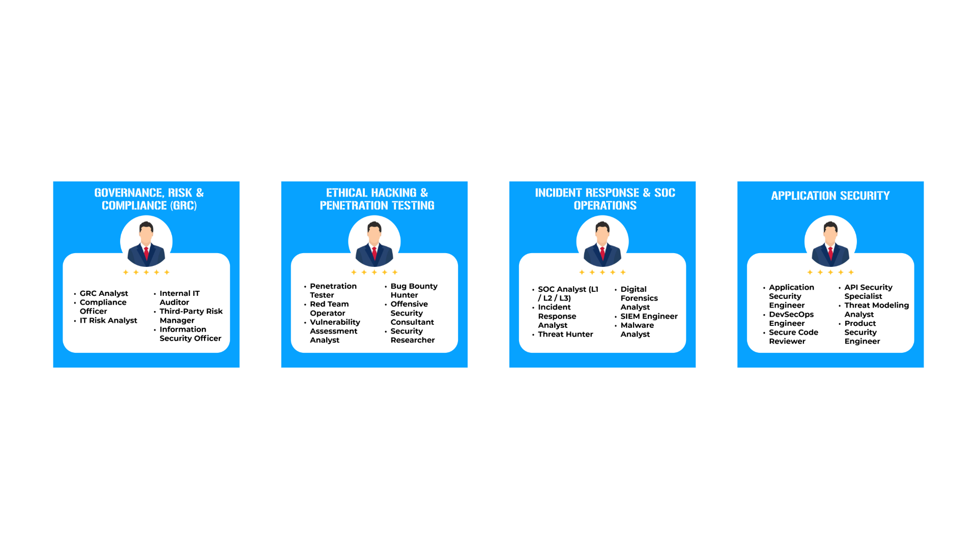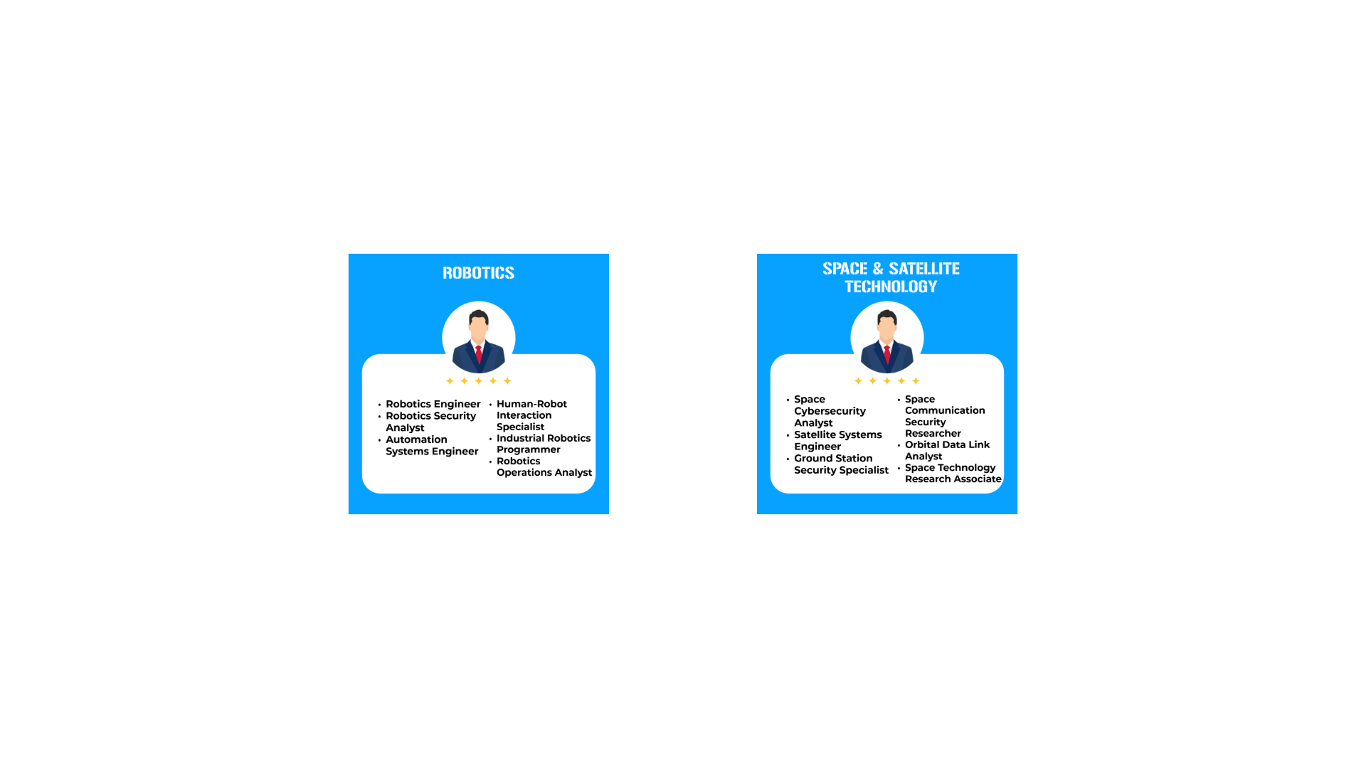 Every Garuda mentorship track is designed to prepare you for specific, in-demand roles across cybersecurity, AI, robotics, and space technology. These are not theoretical career suggestions. These are the exact positions the industry is hiring for right now.